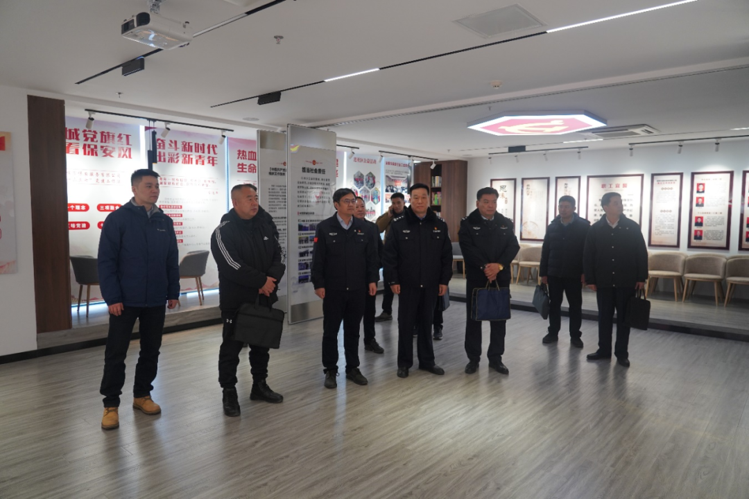 調研組實地參觀了淄博市保安服務有限公司政治生活館、指揮中心、體能訓練館、榮譽長廊。座談會上,淄博市公安局治安支隊分管大隊長李春江介紹了公安機關保安監(jiān)管工作,淄博市公安局治安支隊一級警長林長見介紹了我市警保聯(lián)勤聯(lián)動的主要做法,淄博市保安協(xié)會會長、淄博市保安服務有限公司黨委書記、董事長付志欣介紹了公司近年來守正創(chuàng)新發(fā)展情況。隨后就警保聯(lián)勤聯(lián)動、保安行業(yè)發(fā)展等方面,雙方做了詳細探討并互相交流了經驗。