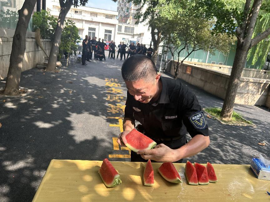 活動設有“大象轉圈”、“吃西瓜比賽”等項目,隊員們以車組為單位進行了激烈的角逐,大家一邊享受比賽的激情一邊品嘗西瓜的清爽,樂趣無窮。最終有兩組隊伍獲得優(yōu)勝獎,隊長張波將清涼解暑的冷飲送到獲獎隊員手中,同時叮囑大家注意飲食,適當補充淡鹽水,不要貪涼,保持夏季健康,以最好的狀態(tài)投入勤務工作。